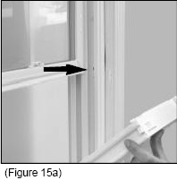 There are 2 jamb adjusting screws on the window. To locate the jamb adjusting screws, tilt the bottom sash inward. The adjusting screws are located near the center of the jamb, on each side of the window. (See figure 15a and 15b)