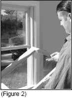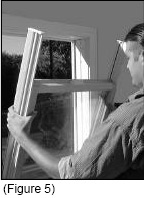 Once the parting stops are out, the upper sash can be removed from the outer track. (See Figure 4)