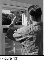 Install and tighten installation screws in the screw holes described above. Do not over tighten as this may distort/bow the frame. (See Figure 13) Replace the top and bottom sash stops at this time.