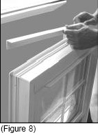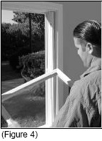 Once the parting stops are out, the upper sash can be removed from the outer track. (See Figure 4)