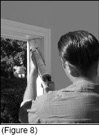 Caulk the inside edge of the blind stop at the top and on both sides of the opening. (See Figure 8)